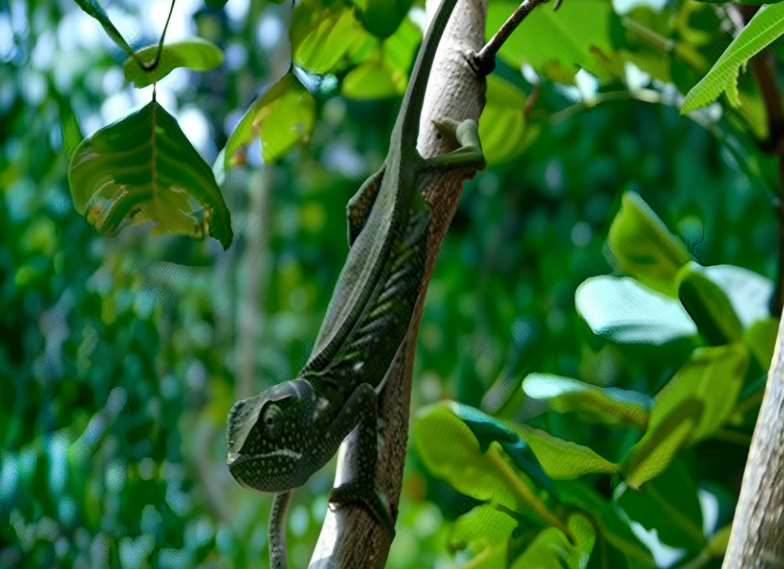 Foto: Chamaeleo dilepis an einer Fundstelle in den Miombo Woodlands, fotografiert von Miguel Avelino